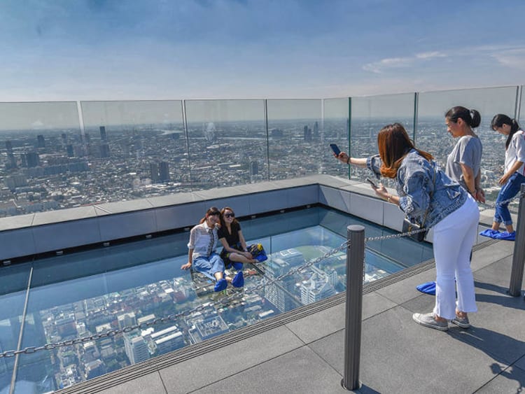 Mahanakhon Building is one of the most popular buildings in Bangkok and its most famous part is one of the world's largest Glass Tray at the height of 310 meters. Visitors can challenge themself walking on the glass tray while looking down at the city far away below.