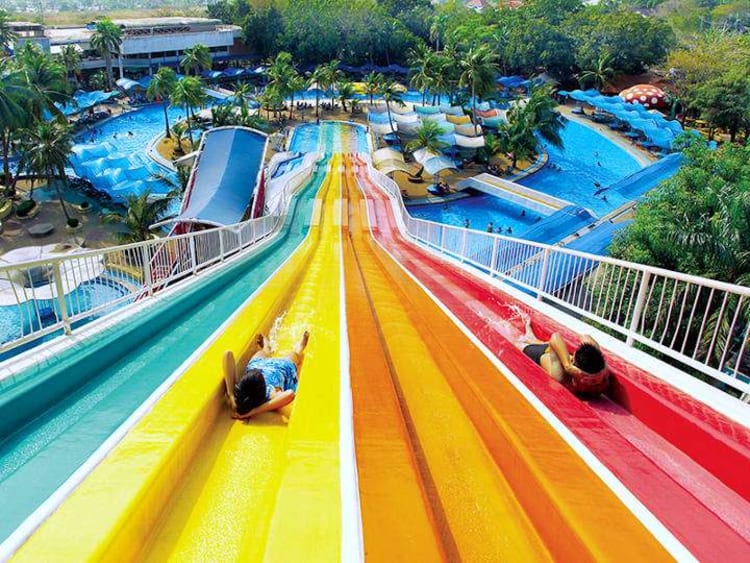 Tourists will be welcomed by a multi-colored castle standing behind the entrance. Then they can have fun with water parks and rides separated into 5 Worlds.