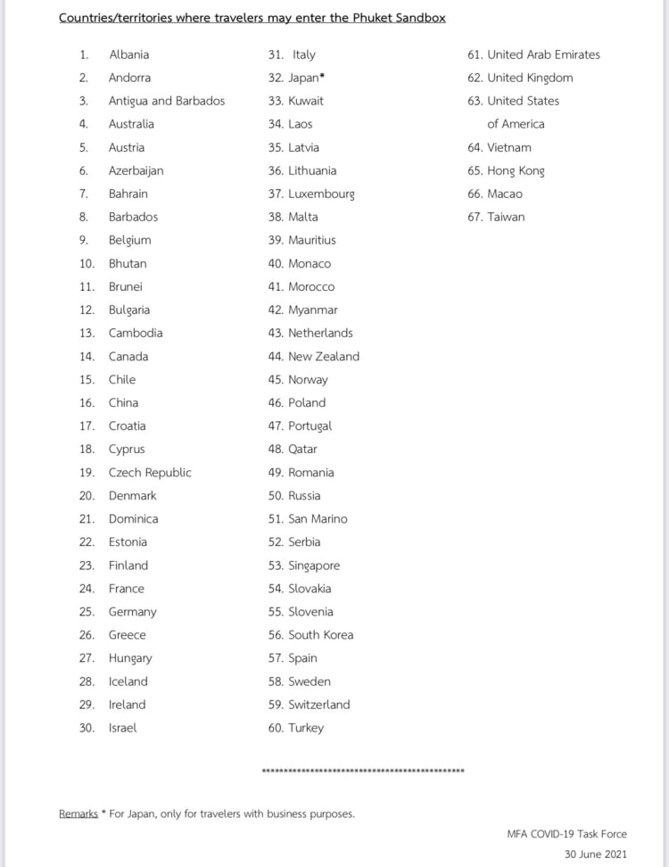 - with negative COVID-19 test result, travelers can travel freely in Phuket