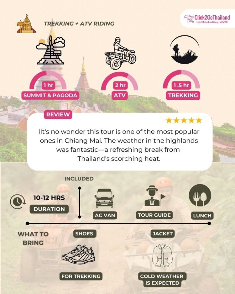 The Doi Inthanon Trekking + ATV Riding tour offers an exciting combination of adventure and natural beauty, making it a top choice for outdoor enthusiasts visiting Chiang Mai.