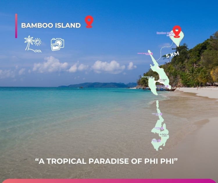 Bamboo Island, also known as Koh Pai in Thai, is a small island located northeast of Phi Phi Don. It's part of the Phi Phi Islands archipelago and is renowned for its pristine beauty and tranquil atmosphere.