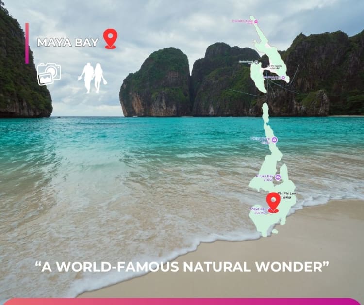 A World-Famous Natural Wonder: Maya Bay gained international fame after being featured in the movie "The Beach". The bay's natural beauty is truly breathtaking, making it a must-visit spot for many tourists. This iconic location is a highlight of any Phi Phi Islands day trip.