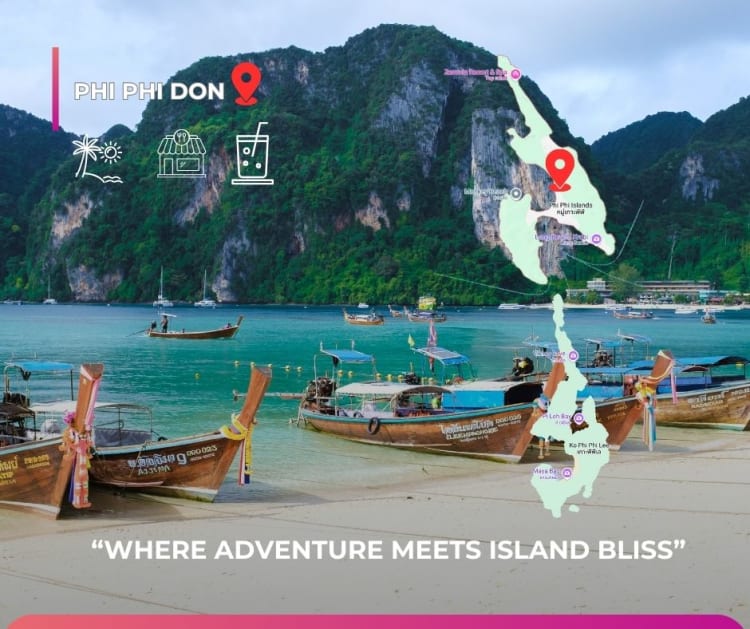 Phi Phi Don is the largest and only inhabited island of the Phi Phi group. It offers a mix of beautiful beaches, vibrant nightlife, and various accommodation options. Visitors can enjoy water sports, hiking, and exploring local villages, making it a perfect base for both relaxation and adventure.
