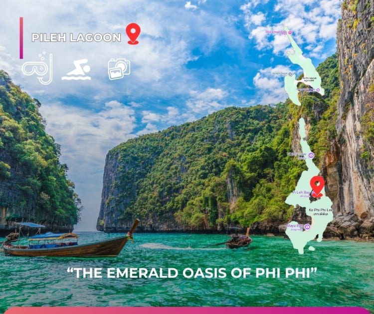 Pileh Lagoon – The Emerald Oasis of Phi Phi: This lagoon is often described as a natural swimming pool. Its emerald-green waters are surrounded by high limestone cliffs, creating a secluded and magical atmosphere. It's a popular spot for swimming and snorkeling.
