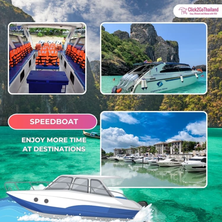 Speedboats are moving fast and designed for quick transportation. They allow passengers to "enjoy more time at destinations." This option is popular among tourists, particularly for trips to Phi Phi Island. There are many speedboat tours available for Phi Phi, catering to visitors who want to explore the area quickly and efficiently.