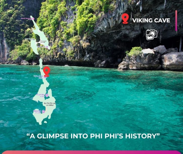 Viking Cave is a historical and natural wonder located on the northeastern side of Phi Phi Leh. The impressive entrance and the sight of swiftlets flying in and out offer a unique combination of nature and history, making Viking Cave a must-see for those interested in both local culture and scenic beauty.
