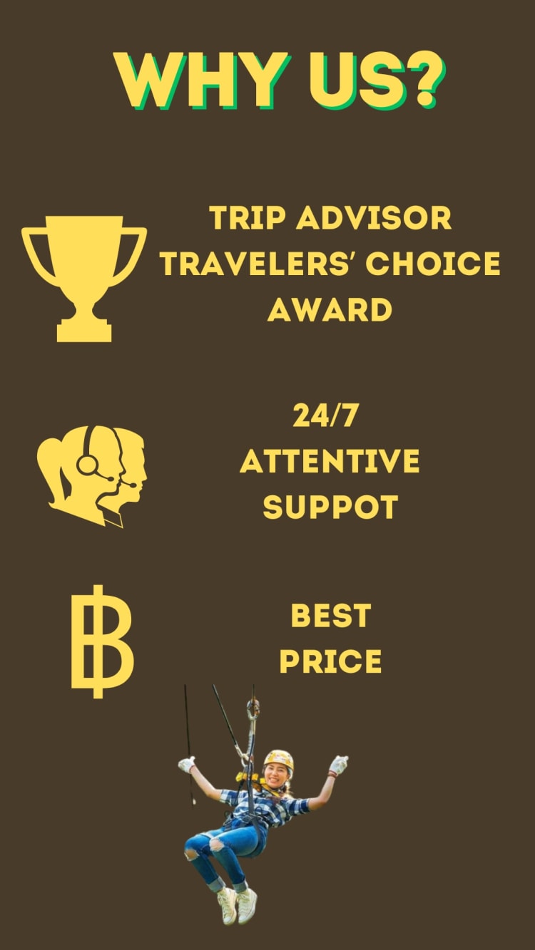 Get ready for an unforgettable adventure! Soar through the lush Thai rainforest on the world's longest jungle zipline roller coaster. Twist, swoop, and spiral through the canopy for a thrilling ride like no other.