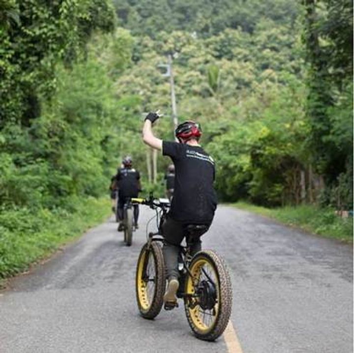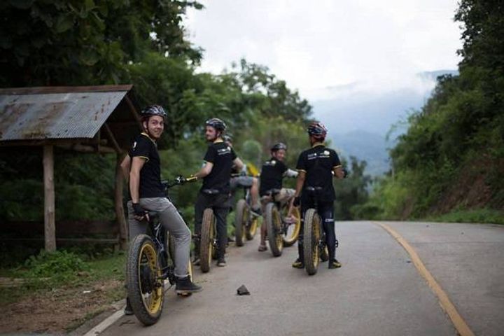 Adventurous e-bicycle riding along beautiful scenery around Chiang Mai .