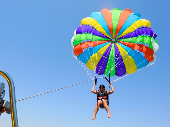 Stop at the Parasailing/Sea Walking station for Package B guests to enjoy their activities, while the other guests wait. |