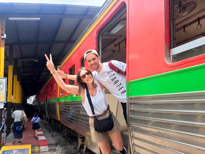 Ride the train through Mae Klong Railway Market, explore its bustling stalls.