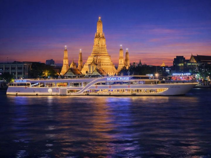 Enjoy a magical sunset dinner cruise along the Chao Phraya River with Noah Cruise!