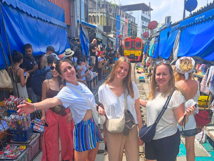 Enjoy a scenic train ride to the famous Maeklong Railway Market and witness the thrilling moment the train passes through vendors’ stalls. |